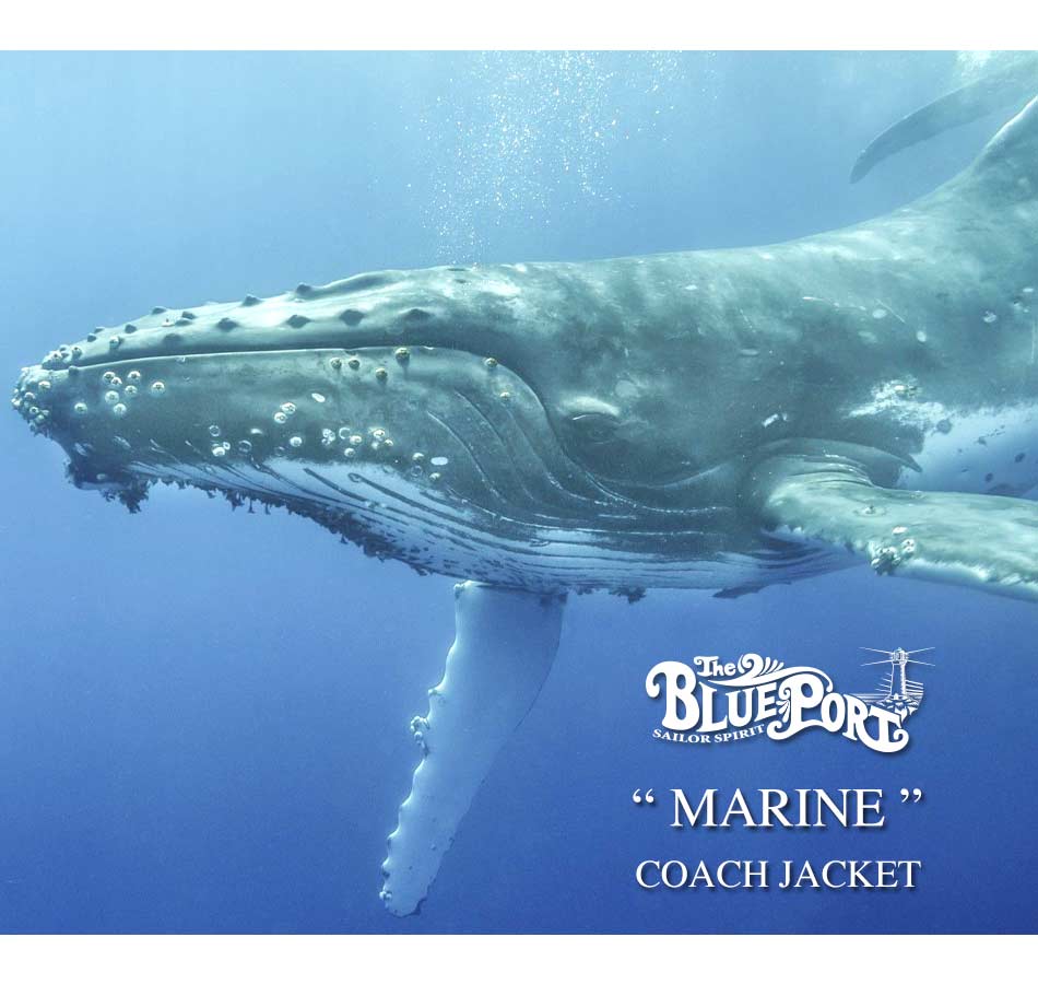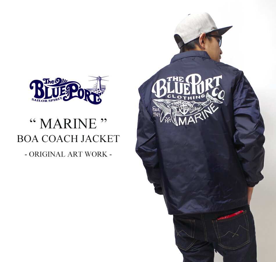 【BLUE PORT】アメリカンベーシックな裏ボアコーチジャケットに、ヒースでも人気の高いデザイン「クジラ」をベースにオリジナルアートワークで大胆にプリント。