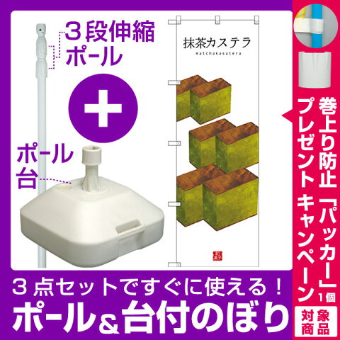 【3点セット】のぼりポール(竿)と立て台(16L)付ですぐに使えるのぼり旗 抹茶カステラ (SNB-2989)