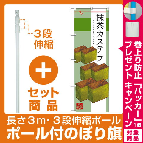 【セット商品】3m・3段伸縮のぼりポール(竿)付 のぼり旗 抹茶カステラ (SNB-2989)